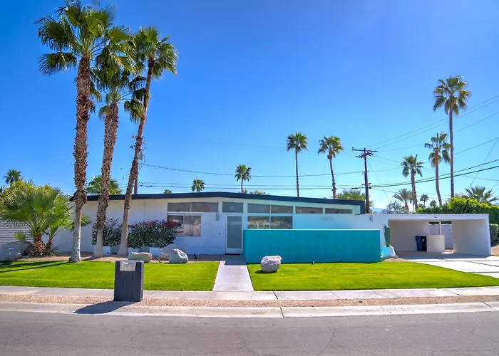 Die 2-Zimmer- The Portrait House A Mid Century Hangout verfügt über eine sonnige Terrasse mit Aussicht auf die Berge sowie einen privaten Swimmingpool.